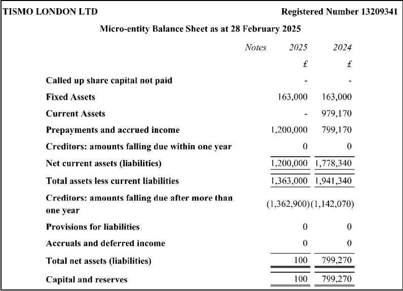 Jedną z wciąż aktywnych spółek jest Tismo London LTD. Jedynym członkiem zarządu i beneficjentem rzeczywistym spółki (co najmniej 75% udziałów) jest Rafał Collins. Spółka z opóźnieniem złożyła sprawozdanie finansowe za 2025 r., w którym wykazała zauważalną aktywność gospodarczą. Wybrane pozycje sprawozdania przekraczają kwotę 1 mln funtów.