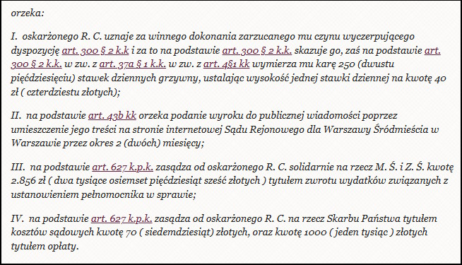 - Wyrok Sądu Rejonowego dla Warszawy-Śródmieścia w Warszawie z 03.09.2024 r. (sygn. akt II K 770/22). Sentencja dostępna pod adresem https://orzeczenia.ms.gov.pl/content/$N/154505300001006_II_K_000770_2022_Uz_2024-09-03_001 ↩︎